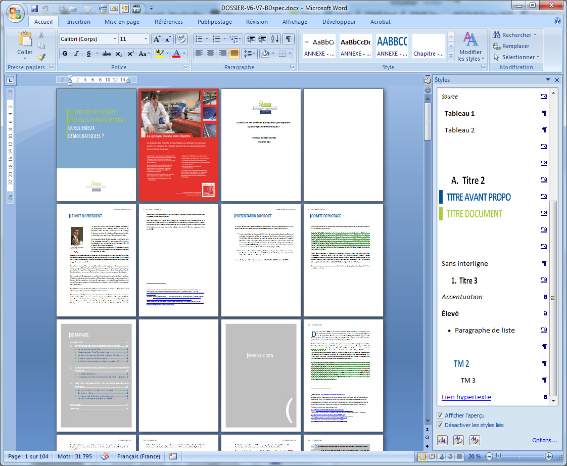 Création d'un modèle Word destiné à la production d'études au format électronique et à l'impression Offset.